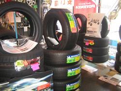 | 当店は、タイヤ屋さんです。 新品タイヤ 各種取り扱っております。 BRIDGESTONE MICHELIN TOYO TIRES PIRELLI DUNLOP・FALKEN YOKOHAMA FEDERAL HANKOOK NEXEN その他 各メーカーのタイヤも取り扱っております。 スポーツタイヤからワゴン用タイヤや、 静かなタイヤからうるさいタイヤ?まで 各種いろいろと、取り扱っております。 目的にあった、タイヤをご提案させて頂きます。 詳しくは、店頭にてお願いします。 軽自動車 夏用タイヤ 4本セット価格! ブリヂストン ネクストリー 155/65SR13→¥! ブリヂストン ネクストリー 155/65SR14→¥! ヨコハマ エコスES31 165/55VR15→¥! ダンロップ VAN01 145R12・6PR→¥! 上記金額は、タイヤ4本+ハメカエ+バランス+古タイヤ処理・ ゴムバルブ交換+税金の全て込み込み価格です。 |